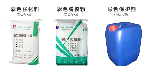 4.彩色脫模粉處理:施工的表面均勻拋撒彩色脫模粉,將整個表面覆蓋,同時在模具的表面也上一些脫模粉;
